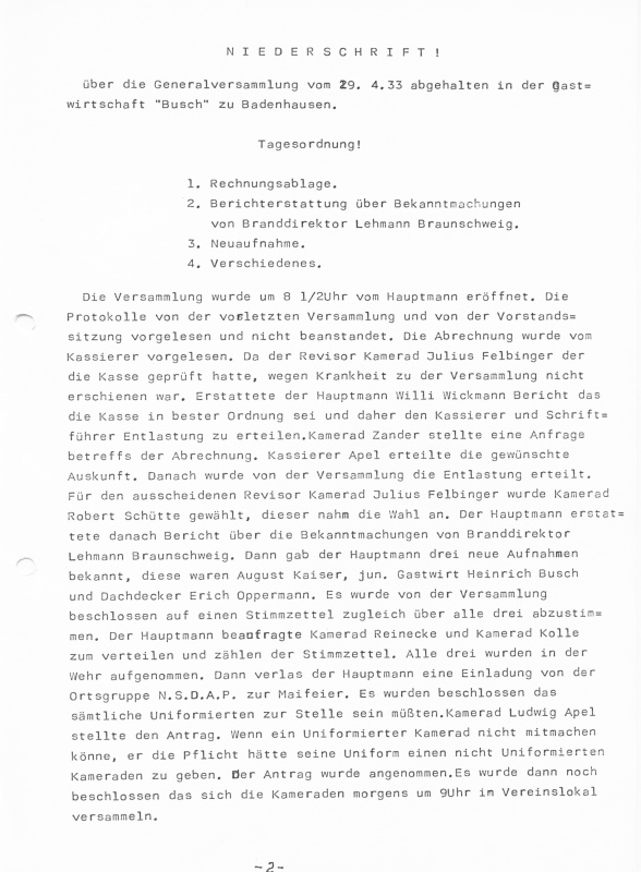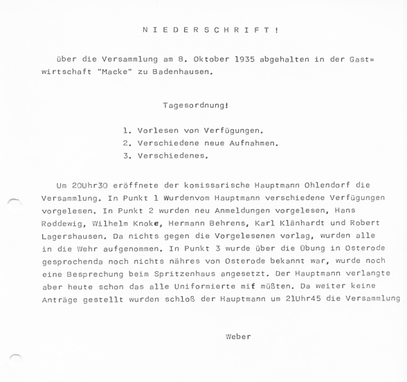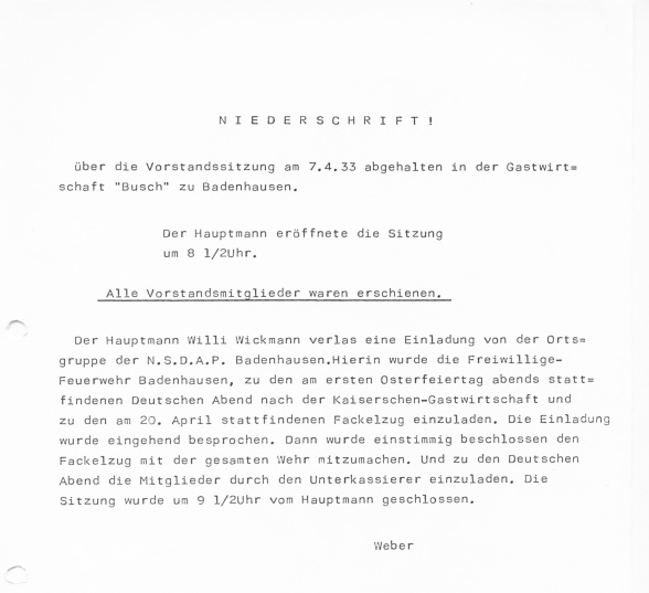der Wandel in der Feuerwehr Badenhausen dargestellt werden.