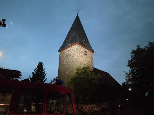 Hier wurde die Kirche durch die Lichtanlage der FFW angeleuchtet.